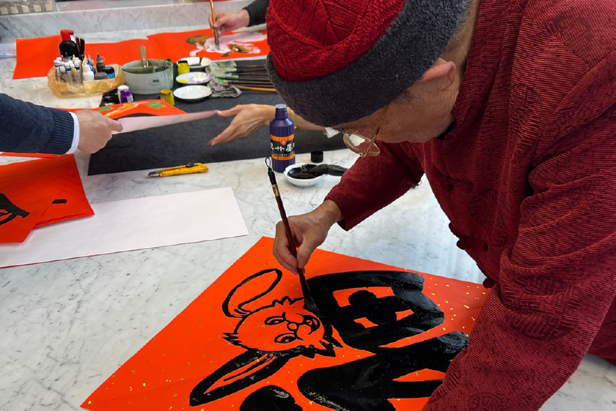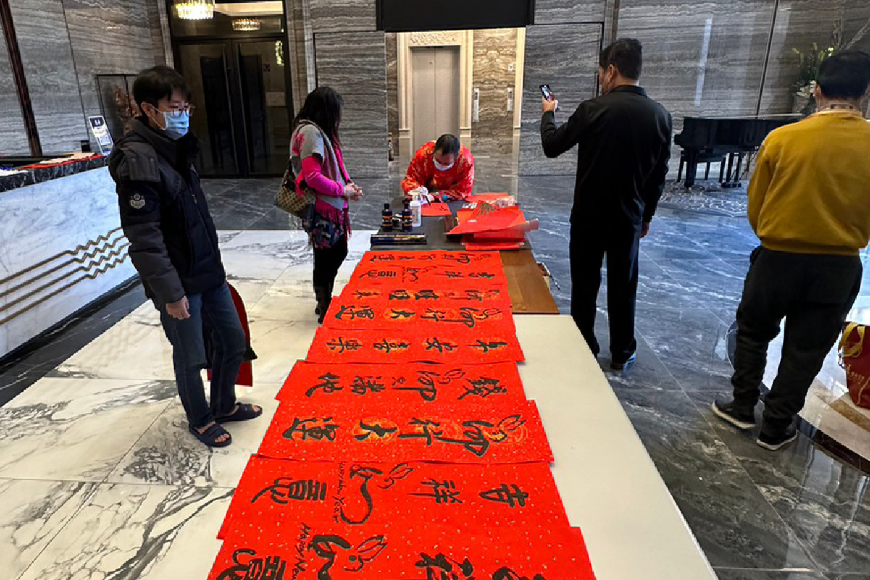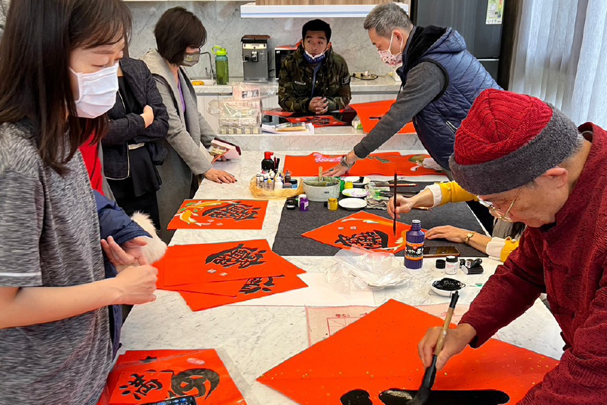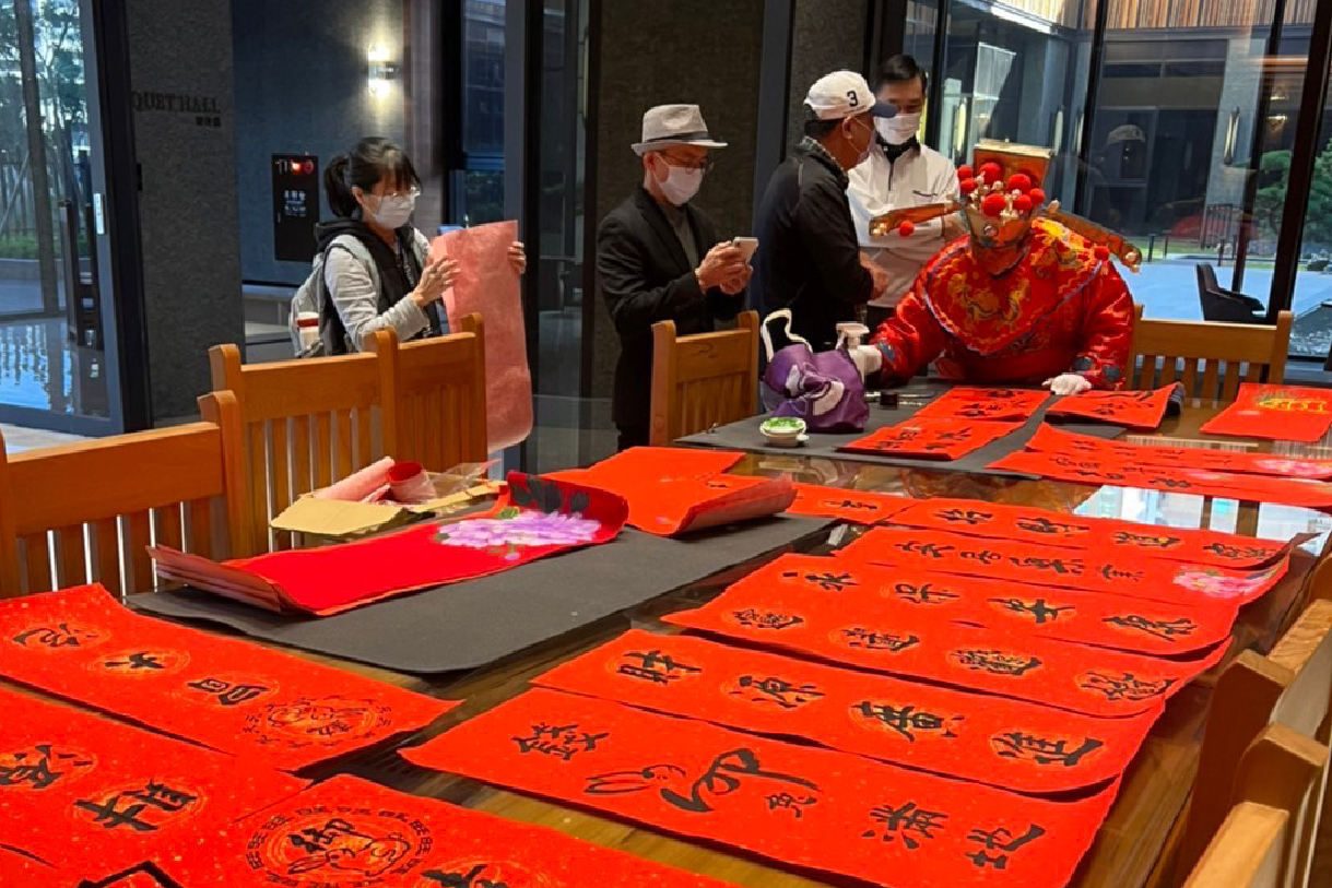 新春到!藉由邀請社區民眾一同寫書法,同享迎春之喜,